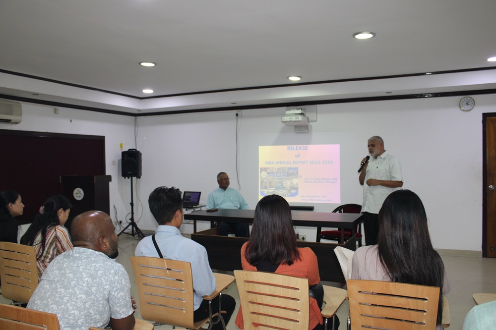 ANMA Integrated Development Association (AIDA), Dimapur, presented its Annual Report for the fiscal year 2023-2024 during a special event held at the AIDA premises conference hall. Rev. Fr. Nebu Mathew, the Treasurer of AIDA and Rector of Don Bosco Campus Dimapur, graced the occasion by formally releasing the report. The gathering included Rev. Fr. Dr. Roy George, Executive Director of AIDA, Dr. Bibiana Lungbila, HR, dedicated staff members and interns from Assam Down Town University.